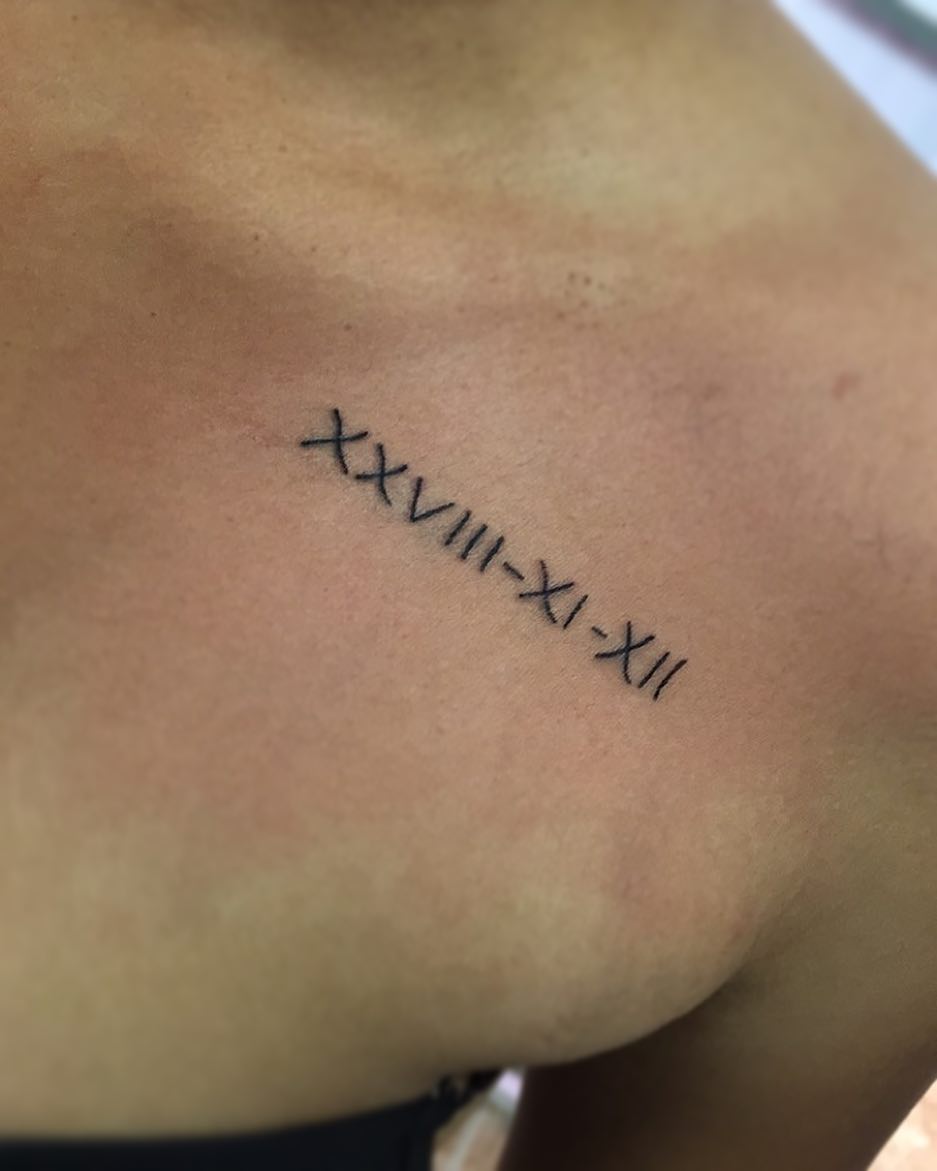 贾小姐锁骨罗马数字纹身图案