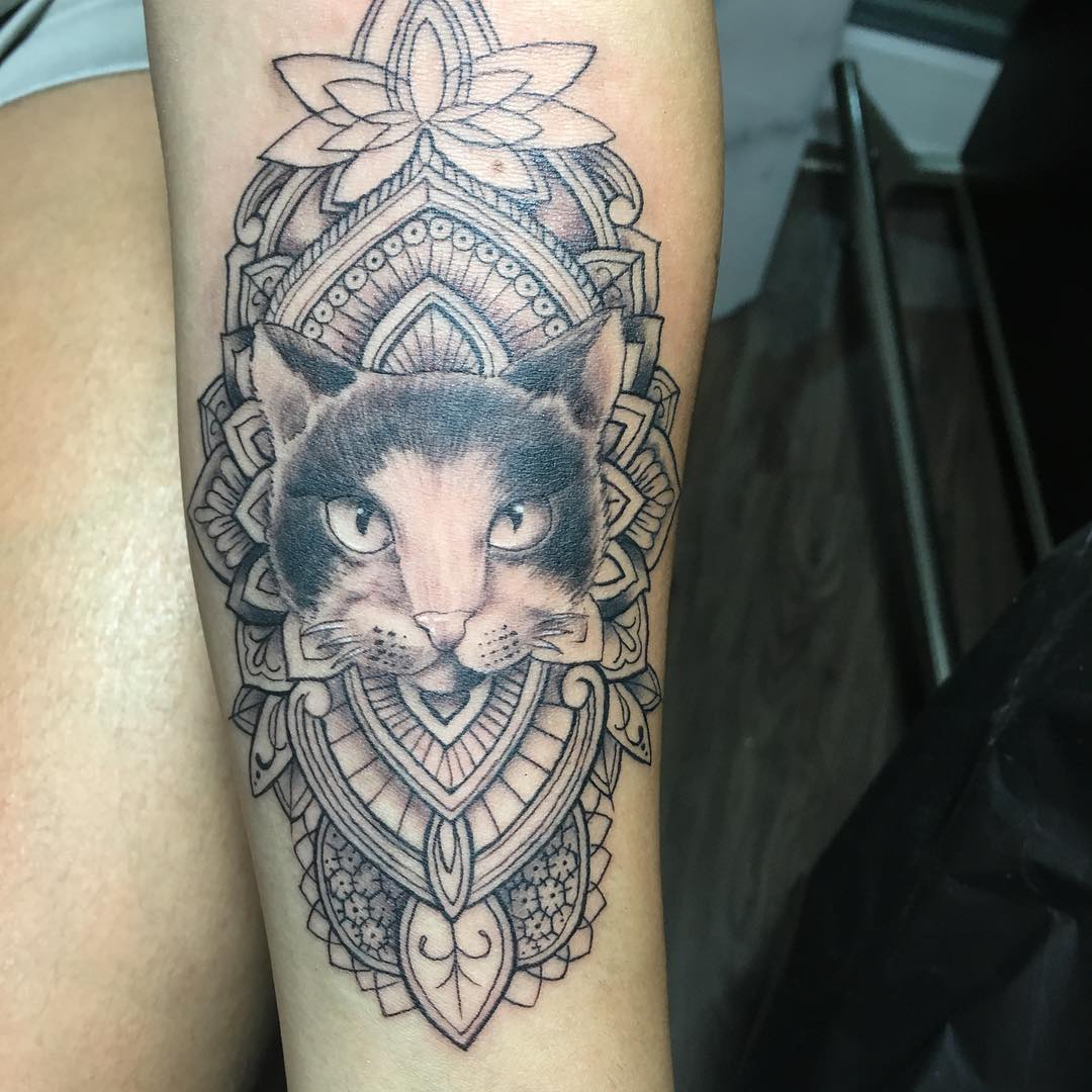 重庆弘扬华城国际做体育老师的蒯小姐小臂梵花猫纹身图案